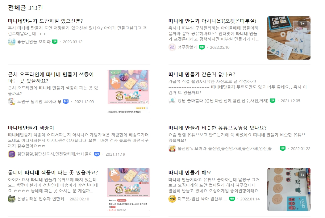 커뮤니티를 통해 따니네 만들기 도안을 찾는 사람들도 많이있고 따니네 만들기에서 올려주는 도안과 영상을 서로 공유하는 사람들도 많이 있습니다. 따니네 만들기 색종이 구매 정보도 공유되고 있습니다.
