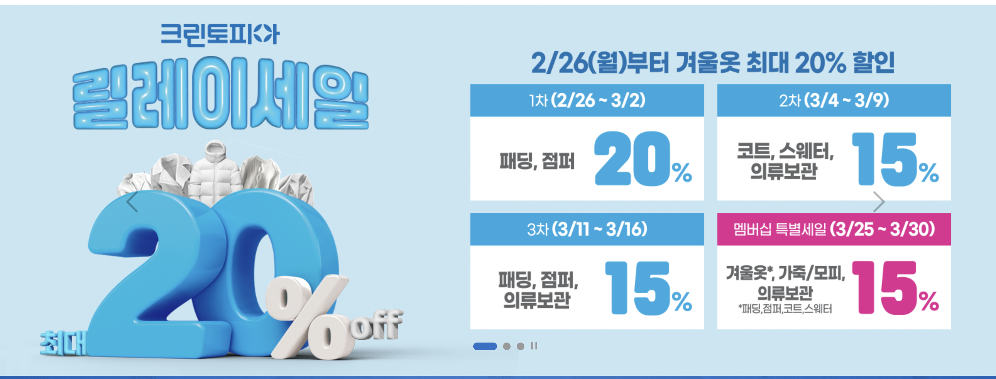 다음주 ( 3월11일부터 ) 그리고 이번달 전체기간동안에 롱패딩, 겨울코트 등 겨울용품에 한해서 할인혜택도 있으니 이 기간 놓치지 말고 겨울내도록 나를 따뜻해게 해줬던 롱패딩을 보내줍시다.