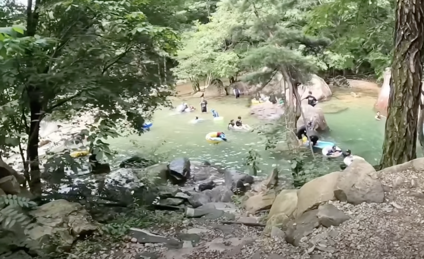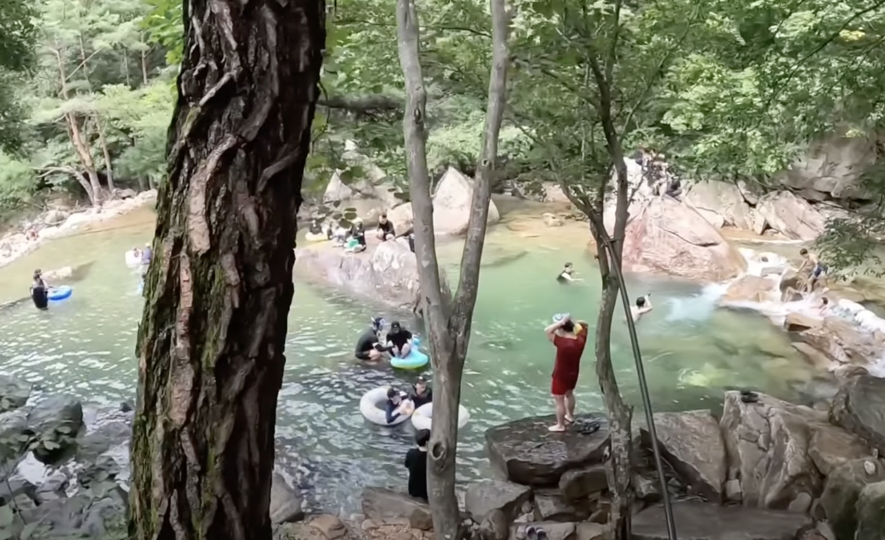 계곡 물은 에메랄드 빛깔로 정말 아름다웠고, 물이 많아 놀기 딱 좋았어요. 다만 물이 꽤 차가워서 처음에는 조금 적응이 필요했어요.ㅎㅎ