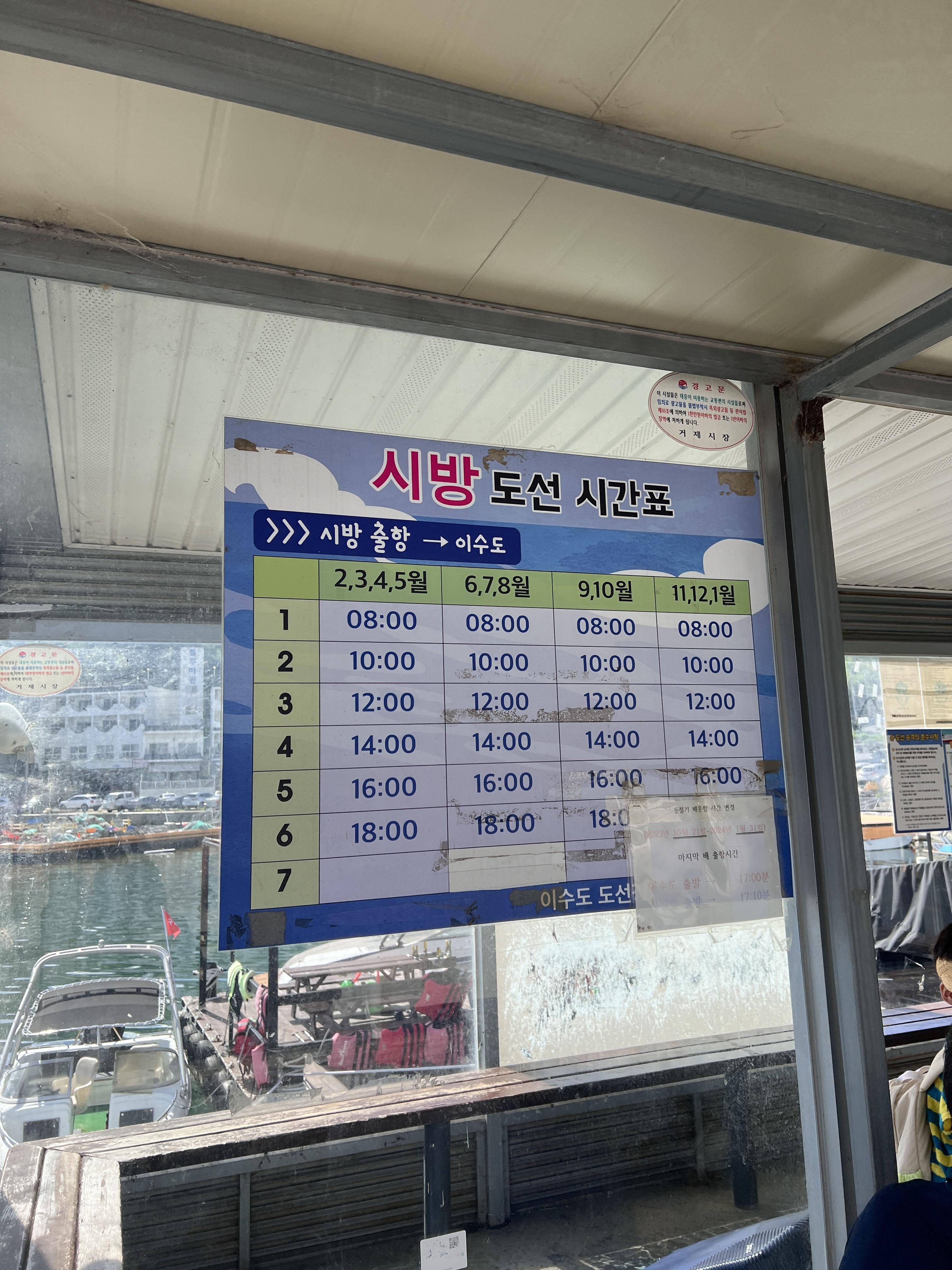 시방항 출발 → 이수도 배편 시간표