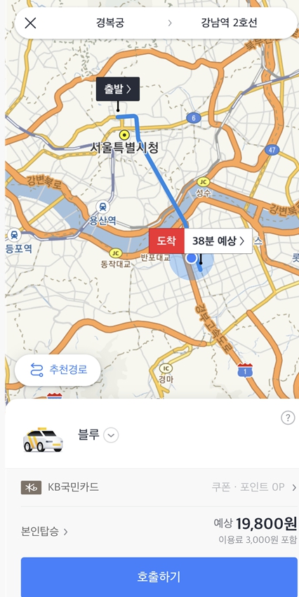 출발지 지정이 가능하고 경로도 미리 볼 수 있는 등 낯선 지역에서는 더 신뢰가 가는 카카오택시입니다.