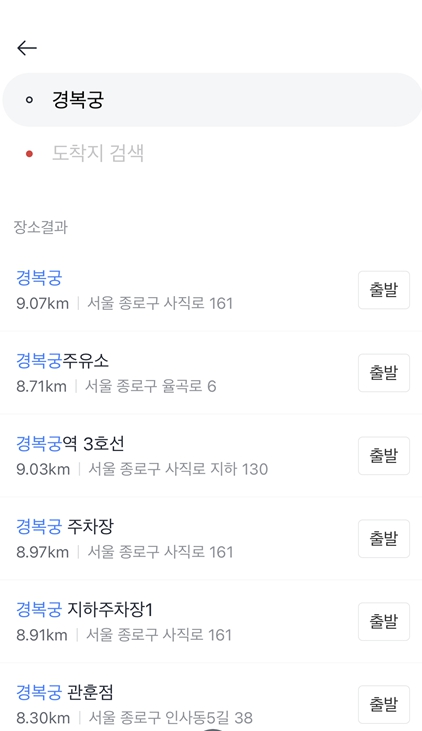 출발지를 경복궁으로 설정하고 도착지를 강남역으로 설정해 보겠습니다.