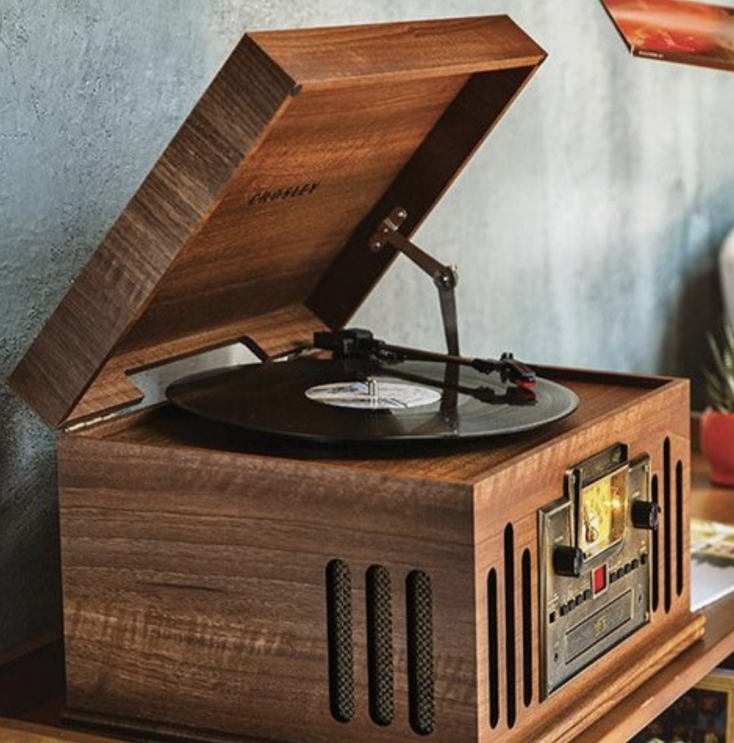 세 번째로는 ‘크로슬리 뮤지션 올인원 블루투스 턴테이블’입니다. 이 제품은 완전히 올인원으로 LP, 라디오, 블루투스, CD, 심지어 카세트 테이프까지 재생 가능해요! 음질도 꽤 묵직해서 별도 스피커가 없어도 충분히 좋은 소리를 들을 수 있어요. 디자인도 클래식하고 크기가 커서 존재감이 확실하니, 음악을 제대로 즐기고 싶은 분들께 강추!”