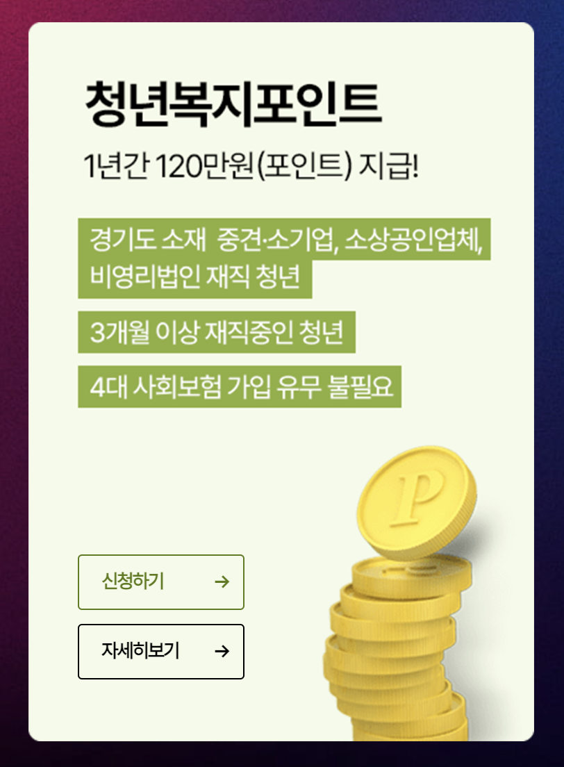 2024 경기도에 거주하는 청년에게 복지포인트를 신청할수 있는 희소식이 있습니다.
